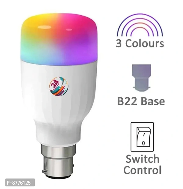 9 WATT B22 ROUND DOB Led Bulb Multicolor 3 in 1 Combo Pack Of 4 Bulb, Bulb Base: B22 Wattage: 9-Watts, Special Feature: Long life, low power consumption, power saving LED lamp, Zero mercury content makes the disposal easy, Non toxic - no lead, no mercury, Up to 40 percent energy saving (compared to CFL),Up to 85 percent energy saving (compared to GLS)