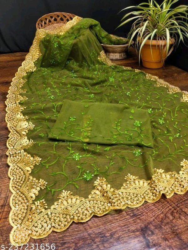 Heavy Net Fabric and chikankari Saree with Embroidered & Moti Work Saree, Net Blouse Piece with Work, Best Quality Guaranty.