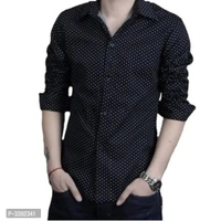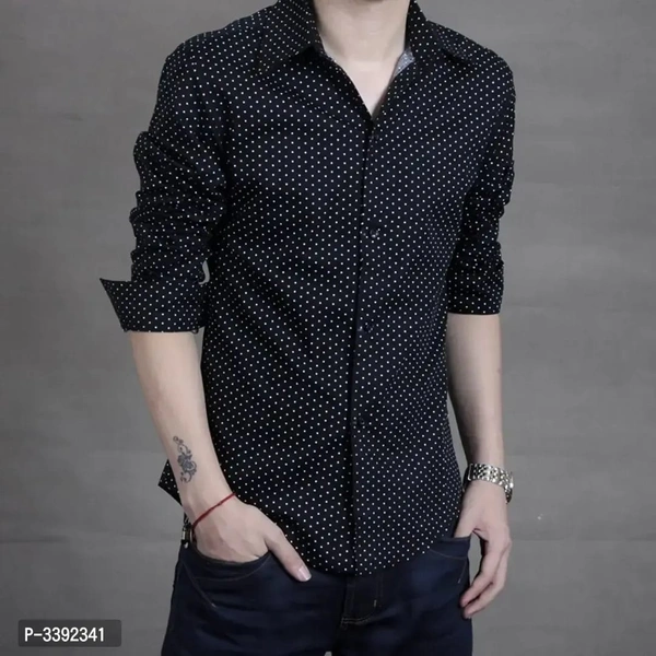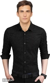 Black Printed Cotton Slim Fit Casual Shirt