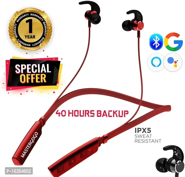 MASTERGOGO BRINGS NEW 40Hours Playtime Bluetooth Neckband With Fast Charging WIRELESS BLUETOOTH NECKBAND HEADPHONES INSULATING DESIGN - Full silicone material with double layer ear cup to perfectly suppress background noise, snoring, TV sounds in living room, office and roommate sounds, etc. Ultra realistic sound - Enjoy even the smallest nuances and sound in studio quality thanks to high-resolution audio, which outperforms CDs. The passion for music is noticeable in all components, so you feel the artist would appear right in front of you. No tangled cables ndash; thanks to the practical magnetic closure, the cables do not tangle, and the headphones are always ready to use. Multi-device support.