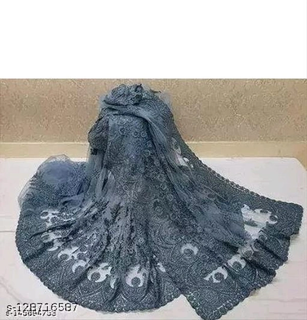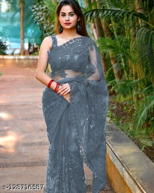 Brasso Net Grey cut work Saree With Blouse