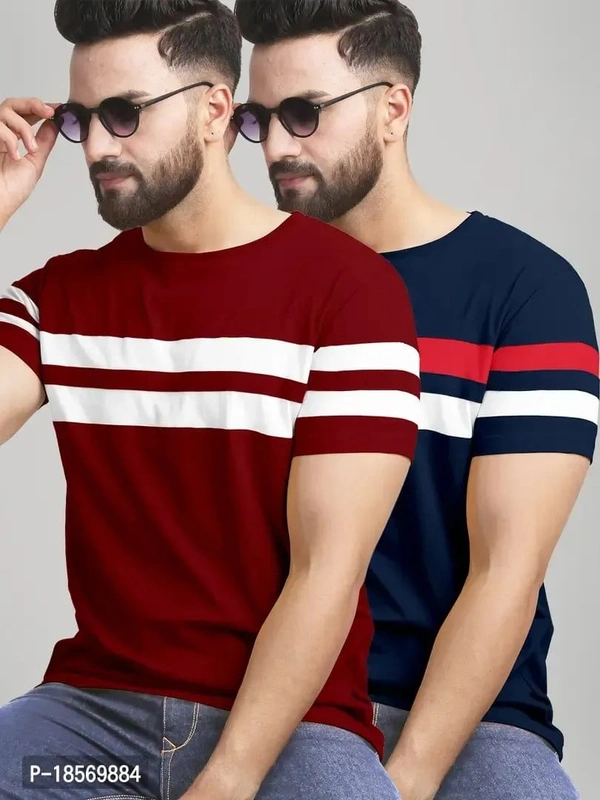 Elegant Cotton Blend Colourblocked Round Neck Tees For Men- Pack Of 2