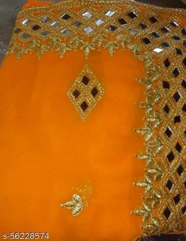 Name: DURGA PUJA Georgette Orange Mirror Work Saree With Blouse