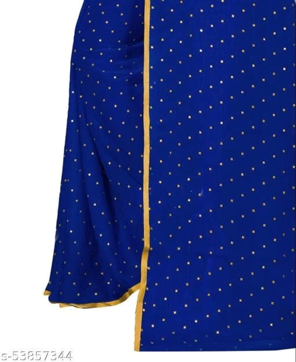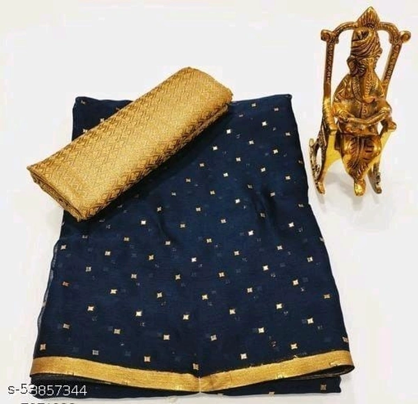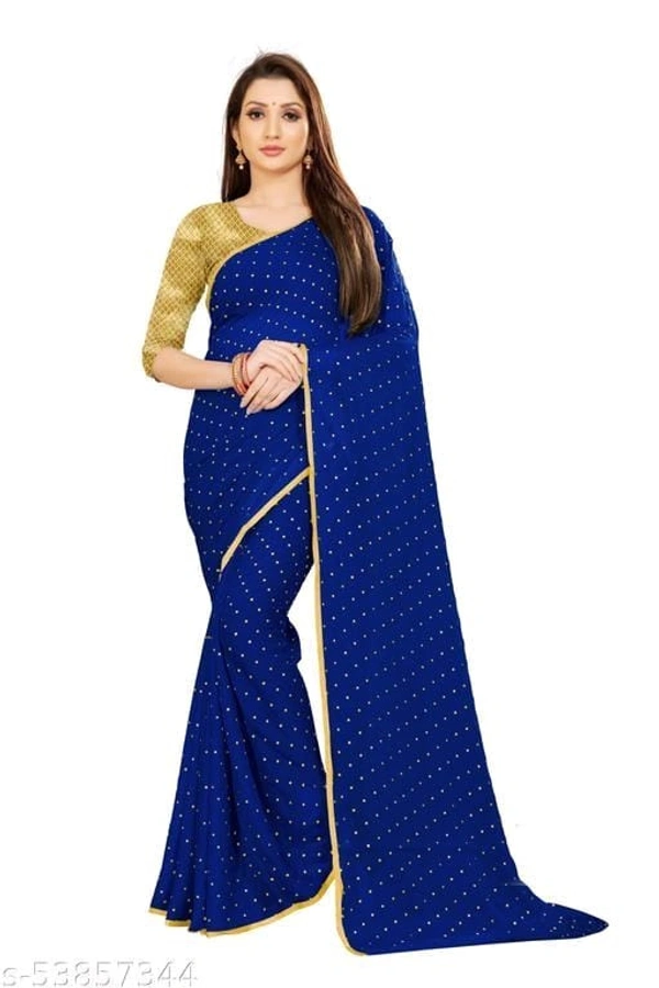 Name: Foil Print Navy blue Coloured chiffon Lace Bordered Saree With Blouse