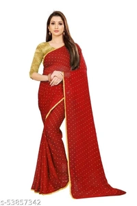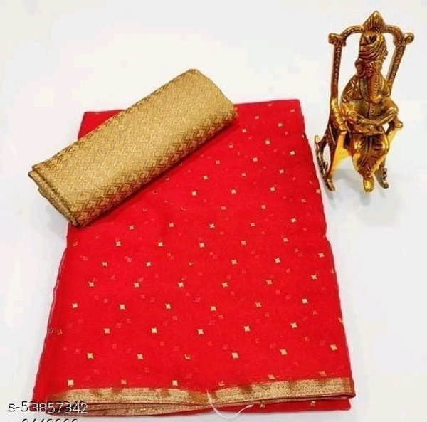 Name: Foil Print Red Coloured chiffon Lace Bordered Saree With Blouse