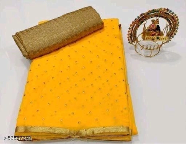 Name: Foil Print Yellow Coloured chiffon Lace Bordered Saree With Blouse
