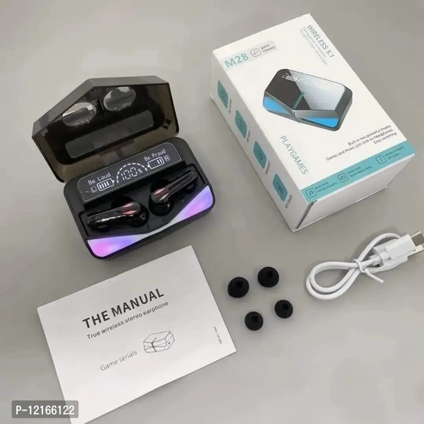 Wireless chip: The headphones adopt bluetooth-compatible V5.1 chip, which works with low latency and sensitive stereo sound, giving you a good gaming experience. Rechargeable: The charging box makes it easy for you to charge the headset, and you can use the headphones for a long time after fully charged, saving time for you to charge frequently. Waterproof: These earbuds are life water-resistant, so you can use them without being afraid of sweat, suitable for sports, running, gaming, etc. Excellent Sound Ensure Fast Stable Connection Waterproof. Gaming Monster Earphones: Noise-cancelling non-slip: The earbuds can reduce the noise effectively, and you can wear them without worrying about slipping or falling off, not easy to make trouble for you. M28 Wireless Earbuds TWS Bluetooth 5.1: Bluetooth-compatible version: V5.1. | Playing time: 4-5h. | Calling time: about 6h. | Standby time: about60 to 80 h. | Resistance: 32Ω. | Speaker: approx. 8mm/0.31inch. | Frequency response: 20Hz-20KHz