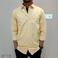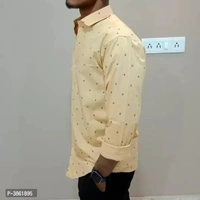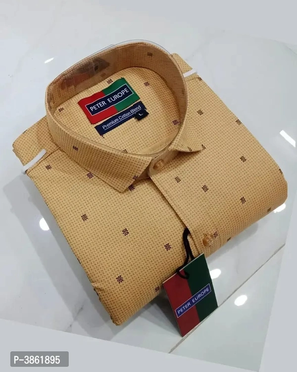 Men's Begie Cotton Printed Long Sleeves Regular Fit Casual Shirt