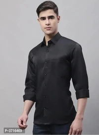 Men's Black Cotton Solid Long Sleeves Regular Fit Formal Shirt