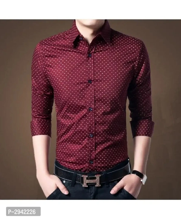 Men's Maroon Printed Cotton Blend Full Sleeve Casual Shirt