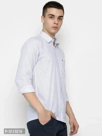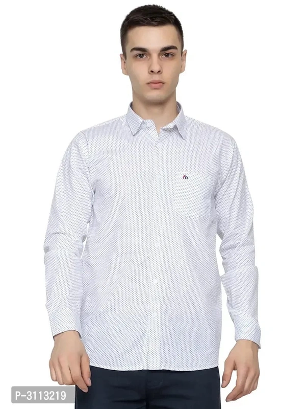 Men's White Cotton Long Sleeves Printed Slim Fit Casual Shirt