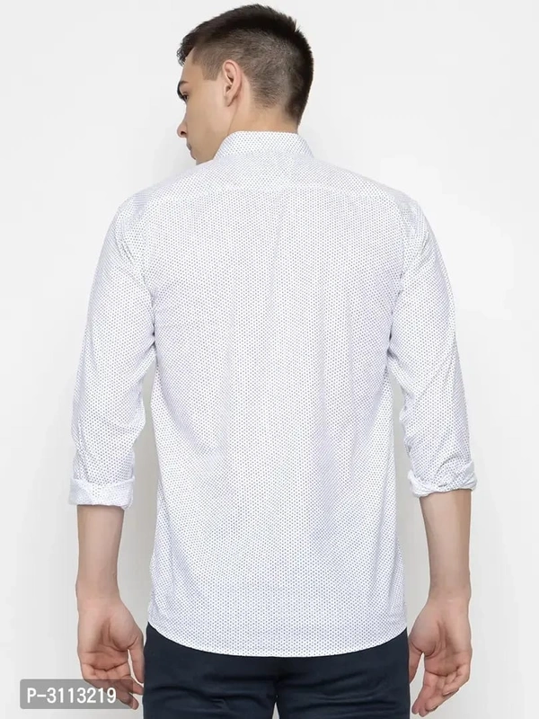 Men's White Cotton Long Sleeves Printed Slim Fit Casual Shirts
