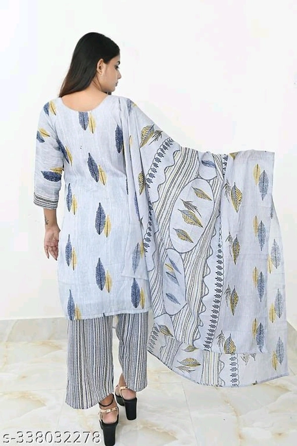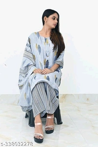 1. **Elegant Design**: The set features a beautifully printed Kurti, Plazo, and Dupatta, designed to blend tradition with contemporary style.