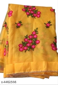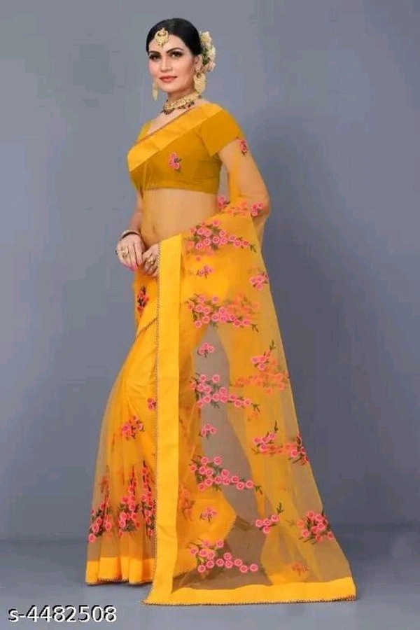 Name: TEESWALA Net Yellow Embroidered Saree With Blouse