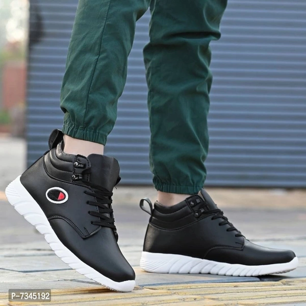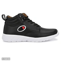 Stylish Fashionable Black Leatherette Trendy Modern Daily Wear Lace Ups Running Casual Shoes Sneakers For Men