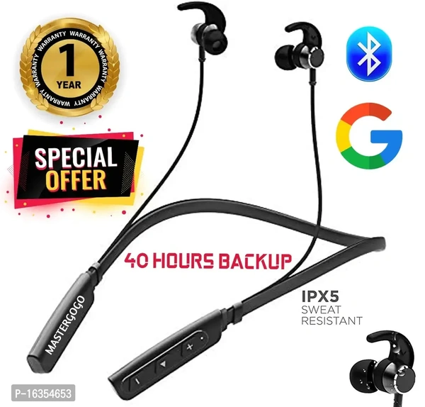 MASTERGOGO BRINGS NEW 40Hours Playtime Bluetooth Neckband With Fast Charging WIRELESS BLUETOOTH NECKBAND HEADPHONES INSULATING DESIGN - Full silicone material with double layer ear cup to perfectly suppress background noise, snoring, TV sounds in living room, office and roommate sounds, etc. Ultra realistic sound - Enjoy even the smallest nuances and sound in studio quality thanks to high-resolution audio, which outperforms CDs. The passion for music is noticeable in all components, so you feel the artist would appear right in front of you. No tangled cables ndash; thanks to the practical magnetic closure, the cables do not tangle, and the headphones are always ready to use. Multi-device support.