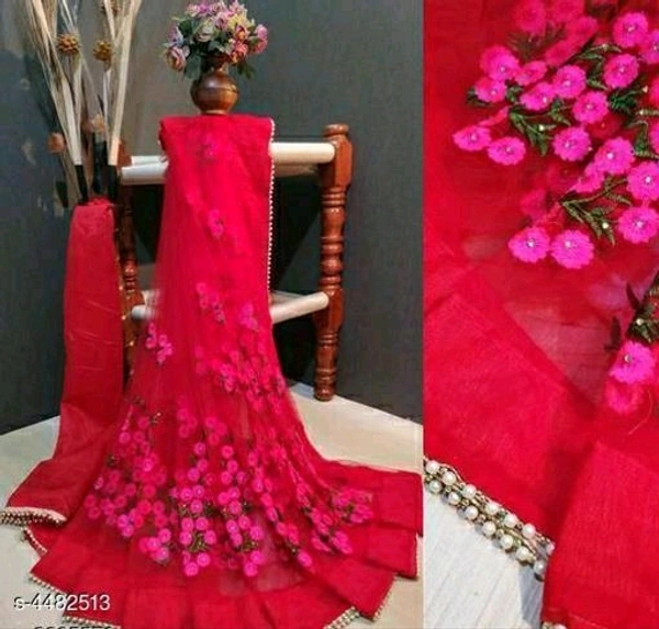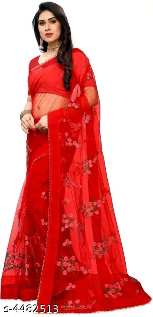 Name: TEESWALA Net Red Embroidered Saree With Blouse