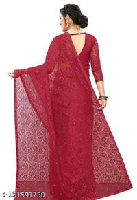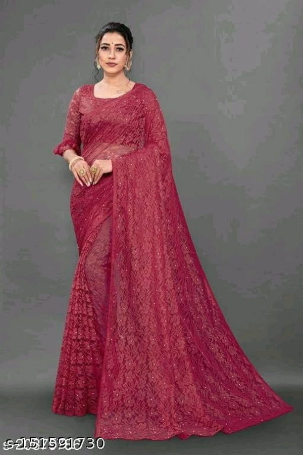 Saree length: 6.30 meters including 0.80 meters blouse pcs.Light comfortable to wear,casual wear, perfect for festival.fashion net Jacquard fabric saree.Moti Work Saree.